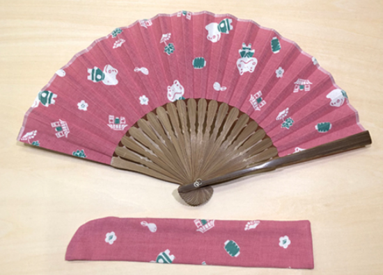 扇面は手ぬぐい生地で、扇骨は竹(唐木)です。
