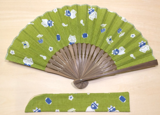 当店オリジナル〝けろ吉〟手ぬぐい生地で作ったお扇子です。