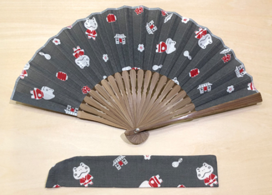 扇面は手ぬぐい生地で、扇骨は竹(唐木)です。