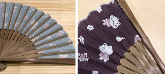 扇面は手ぬぐい生地で、扇骨は竹(唐木)です。