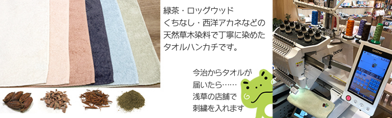 オーガニックコットン100%のタオルハンカチを天然の草木染料で